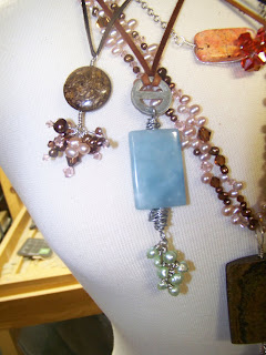ocean jasper briolettes, citrine capsules, green adventurine rounds, peacock and white keishi (petal) pearls, lilac fresh water pearls, smokey quartz faceted rondells,